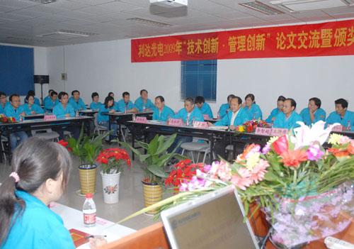 | ??????? 深秋時節(jié),正當公司廣大干群以百倍的努力,昂揚的精神狀態(tài),投入到大干一百天,全力沖刺年度經(jīng)營目標的關(guān)鍵時刻,10月30日晚,利達光電舉辦了2009年“技術(shù)創(chuàng)新?管理創(chuàng)新”論文交流暨表彰大會。利達公司中高層管理人員,公司科技和技能帶頭人,各單位技術(shù)主管和骨干80余人濟濟一堂,相互切磋技藝,共享交流成果,以達到用科學發(fā)展的思路,提升利達技術(shù)?管理創(chuàng)新能力,培育創(chuàng)新文化,打造核心競爭力,推動公司產(chǎn)業(yè)升級進而促進年度經(jīng)營目標實現(xiàn)的目的?;顒佑衫_公司副總經(jīng)理李智超主持。集團公司紀委副書記胡旭東應邀參加了會議。 ??????? 現(xiàn)場來自不同崗位的6位工程技術(shù)人員代表,分別站在各自專業(yè)技術(shù)角度,對所研究的課題深入淺出地同與會人員進行了廣泛的交流。既有理有據(jù),點面結(jié)合,有深度和廣度,具有代表性,又圖文并茂,結(jié)合公司實際,使大家有一種耳目一新,受益匪淺的感覺??梢钥闯觯瑥V大技術(shù)、管理人員為參與這一活動著實下了一番功夫。 ??????? 利達公司開展的“技術(shù)創(chuàng)新?管理創(chuàng)新” 交流研討活動,自今年5月份開展以來,經(jīng)過確定主題、下發(fā)通知,宣傳發(fā)動、撰寫論文,評審交流、總結(jié)提高三個階段和三次交流,共收到論文70篇。內(nèi)容涉及技術(shù)研發(fā)、現(xiàn)場管理、班組建設(shè)、節(jié)能降耗等方方面面。具有實踐性、學習性和技術(shù)領(lǐng)先性的三大突出特點。經(jīng)過公司專家評審小組認真評審,有14篇優(yōu)秀論文脫穎而出,并從中選出6篇論文參與了當晚舉行的現(xiàn)場交流活動?;顒庸苍u出一等獎1名,二等獎4名,三等獎10名,組織獎1名,其余論文為優(yōu)秀獎。他們是,一等獎獲得者:光機研究所張志強、王燦燦;二等獎獲得者3位:薄膜器件制造部饒鳳翔等、透鏡二部陳煊、研發(fā)中心張?zhí)m;三等獎獲得者10位:羊琨、彭得力、孫美靜、李躍甫、趙武、楊清波、何玉林、陳榮娟、秦明禮、劉桂書。榮獲“雙創(chuàng)新”研討活動組織獎的是:光機研究所?,F(xiàn)場還舉行了頒獎儀式。 ??????? 利達光電總經(jīng)理王天洲在興致勃勃地聽了大家的現(xiàn)場交流后,對利達公司開展的“雙創(chuàng)新”活動給予充分肯定,在對廣大技術(shù)人員辛勤工作表示感謝的同時,結(jié)合公司目前面臨的形勢和未來發(fā)展,對廣大工程技術(shù)人員和管理人員提出要求。要正確認識自己,充分發(fā)揮自身優(yōu)勢,堅定信心,攻堅克難,推進公司戰(zhàn)略目標實現(xiàn)。各單位要全力以赴抓訂單,確?,F(xiàn)有訂單保質(zhì)準時交付。要以創(chuàng)新的思維,堅定不移地實現(xiàn)產(chǎn)業(yè)升級,提升公司的核心競爭力。要注重公司新業(yè)務的發(fā)展。同時,堅定不移地深入開展生產(chǎn)革新和投影體系建設(shè)工作,全員共同努力“打一場世紀之戰(zhàn)!”相信,通過技術(shù)、管理創(chuàng)新活動深入持久的開展和大家的共同努力,在公司內(nèi)定會形成一種創(chuàng)新文化,成為推動公司產(chǎn)業(yè)升級的堅強動力! ??????? “建設(shè)創(chuàng)新型國家,必須發(fā)展創(chuàng)新文化,努力培育全社會的創(chuàng)新精神。是胡錦濤總書記早在2006年全國科技大會上明確提出的要求。本次活動為廣大技術(shù)人員搭建一個學習交流的平臺,通過活動的繼續(xù)深入,必將對提升公司技術(shù)水平、管理能力,對創(chuàng)新型班組建設(shè),對員工創(chuàng)新意識的培養(yǎng)和推進公司產(chǎn)業(yè)升級起到了良好的促進和支撐作用。(趙冀紅) |