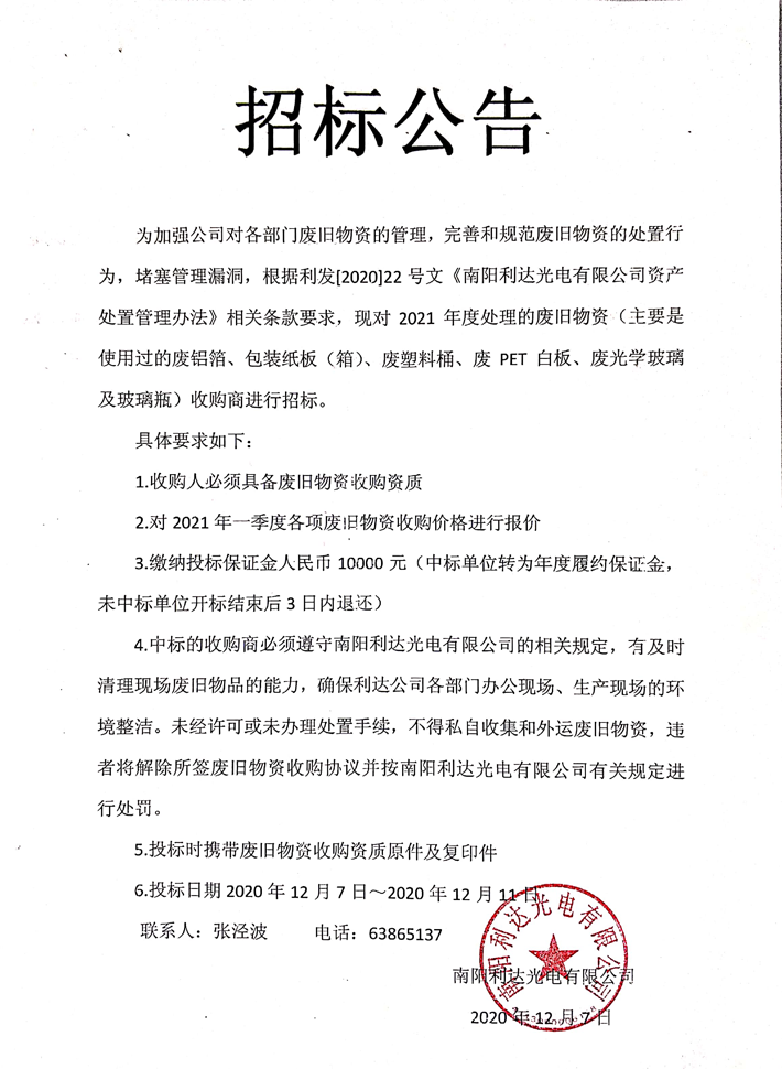 2021年度廢舊物資收購資質(zhì)招標(biāo)