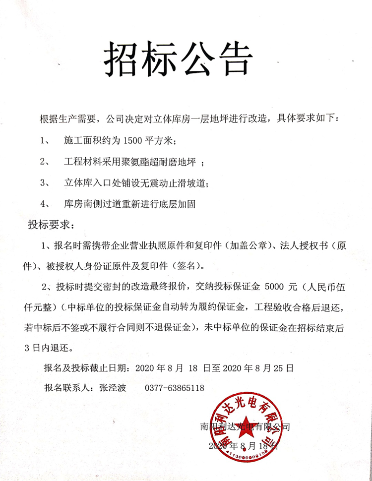 立體庫(kù)房一層地坪改造招標(biāo)公告