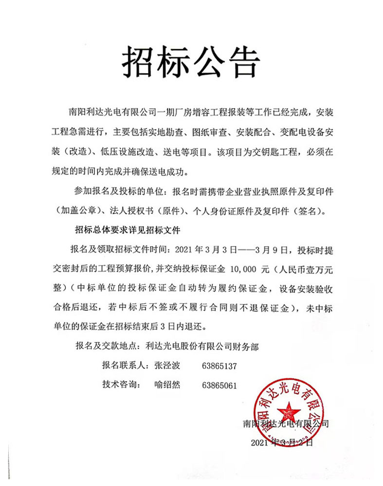 - (2025-07-17)利達光電公開招聘財務(wù)部部長擬錄用人員公示