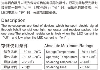 光電耦合器產(chǎn)品當(dāng)前位置:首頁 >> 產(chǎn)品信息 >> 光敏電阻 >> 光電耦合器產(chǎn)品
