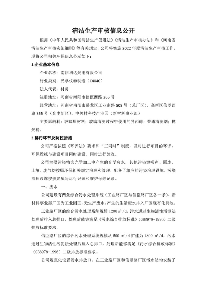 清潔生產(chǎn)審核信息公開