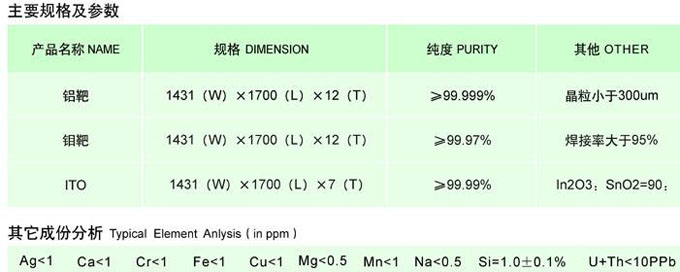 大尺寸靶材當(dāng)前位置:首頁 >> 產(chǎn)品信息 >> 光電新材料 >> 大尺寸靶材